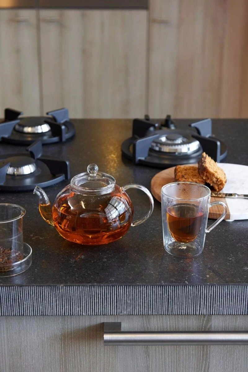 De Solo Verona theepot van Bredemeijer heeft een inhoud van 1 liter. De pot is gemaakt van enkelwandig glas. Wordt geleverd met een glazen theefilter, voor losse thee.
