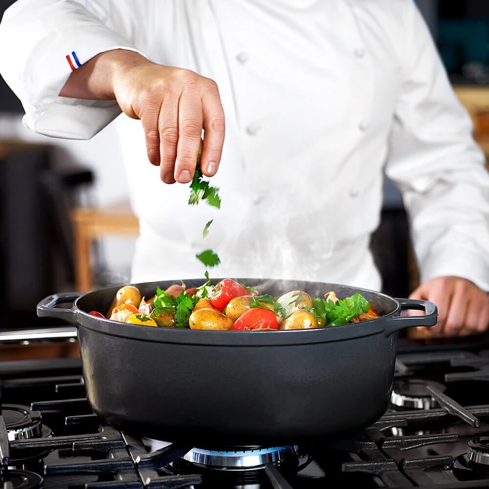 De Oldenhof by Chasseur braadpannen zijn geschikt voor gebruik op alle warmtebronnen, inclusief inductie en dankzij de hittebestendige, roestvrijstalen knop ook in de oven.