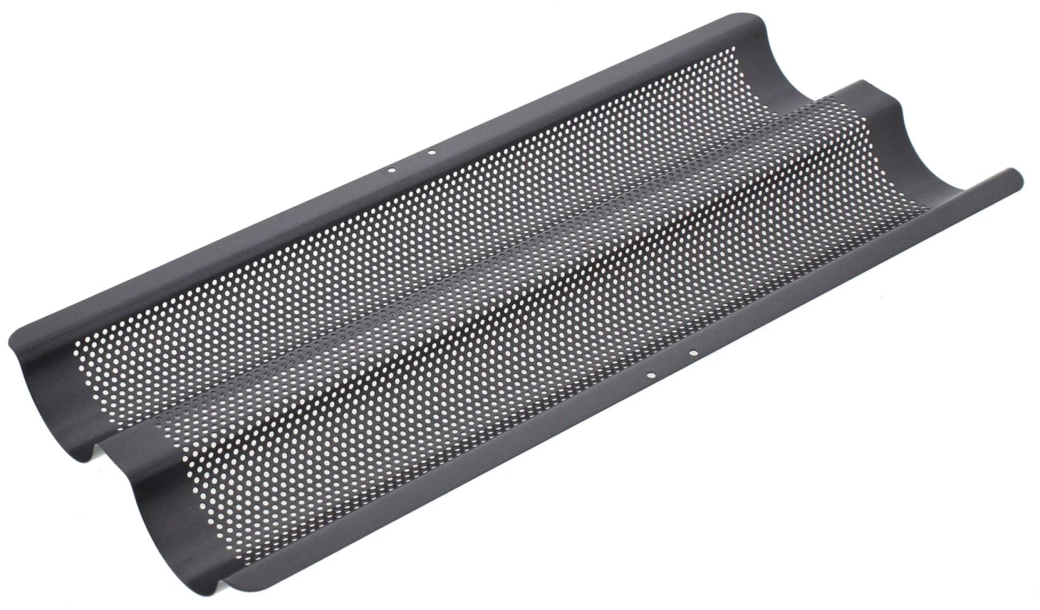 De De Buyer stokbroodbakplaat – ook wel baguettevorm genoemd – is van gemaakt van geperforeerd staal. Het staal wordt beschermd door een PFOA-vrije anti-aanbaklaag. De plaat is 37 cm lang, 16,2 cm breed en 2,5 cm hoog. Gebruik de vorm voor het bakken van twee stokbroden tegelijkertijd of voor het vormen van tuiles of chocoladedecoratie. Gebruik niet boven de 220°C.Â