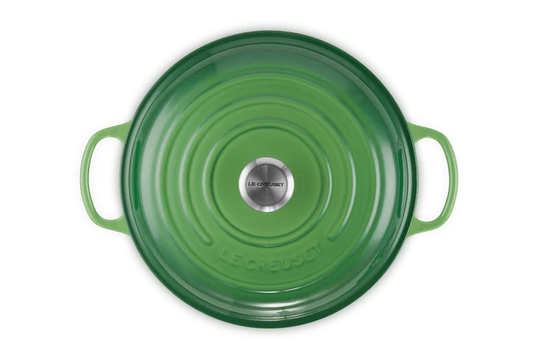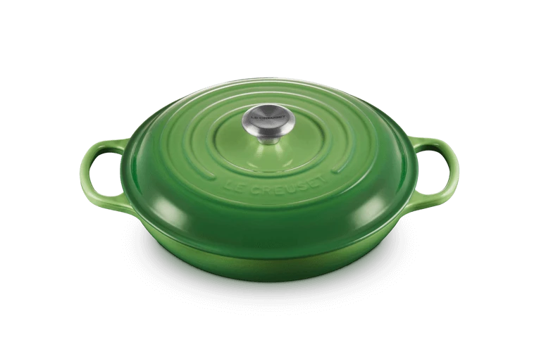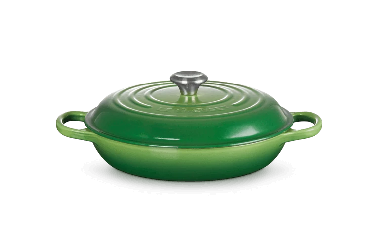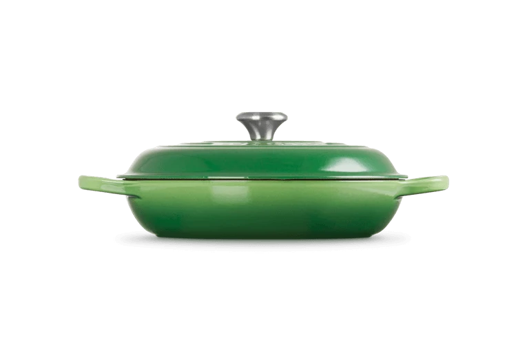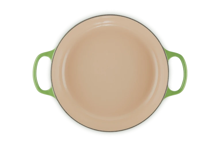 De multifunctionele geëmailleerde gietijzeren lage braadpan van Le Creuset heeft een diameter van 30 cm. Met een inhoud van 3,2 liter heeft de bamboo, groene, pan ruimte om voor 6 personen bijvoorbeeld vlees of aardappelen te bereiden. Het lage elegante formaat maakt de pan zeer geschikt om uw gerechten in op te dienen.