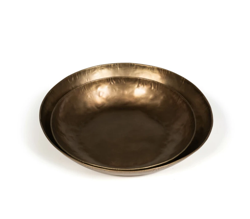 De Oldenhof schaal is gemaakt van metaal met een gouden kleur. De schaal heeft een diameter van 42 cm en is voorzien van een opstaande rand. Gebruik de Oldenhof schaal ter decoratie of als ondergrond voor kaarsen.
