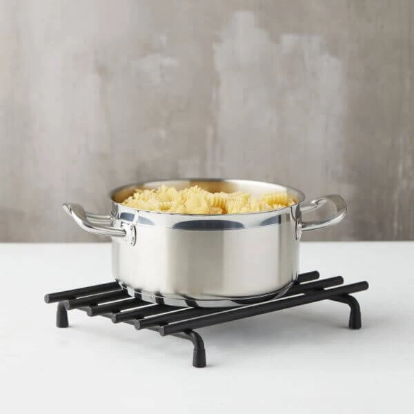 De Wire panonderzetter van Point-Virgule is gemaakt van stevig, zwart metaal, heeft een omtrek van 24 x 18,5 cm en is ook geschikt om uw zware gietijzeren pan op te zetten. Dankzij de vier anti-slip pootjes staat uw pan stevig en veilig op uw tafel.
