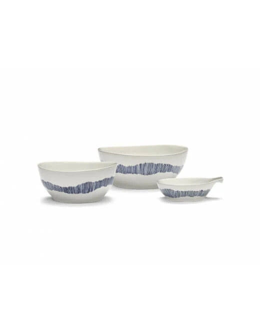 De Serax Feast by Ottolenghi kom S heeft een diameter van 15 cm en is 7 cm hoog. De aardewerken kom is wit van kleur en is voorzien van blauwe strepen. Gebruik voor het serveren van diverse kleine gerechten.