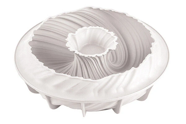 De Silikomart flexibele bakvorm heeft de vorm van een gedraaide tulband. De vorm heeft een doorsnede van 20 cm en is 7 cm hoog met een inhoud van 1 liter.