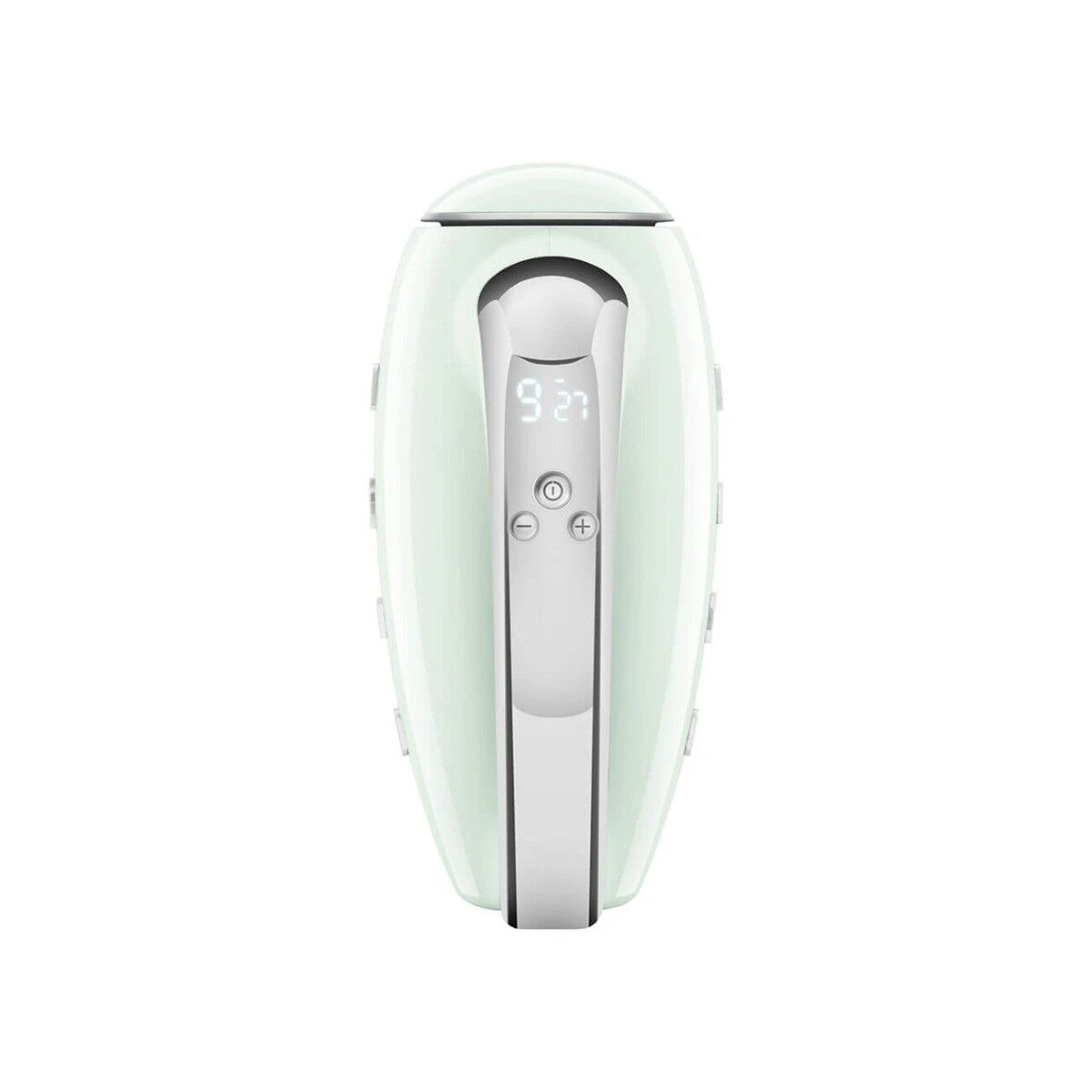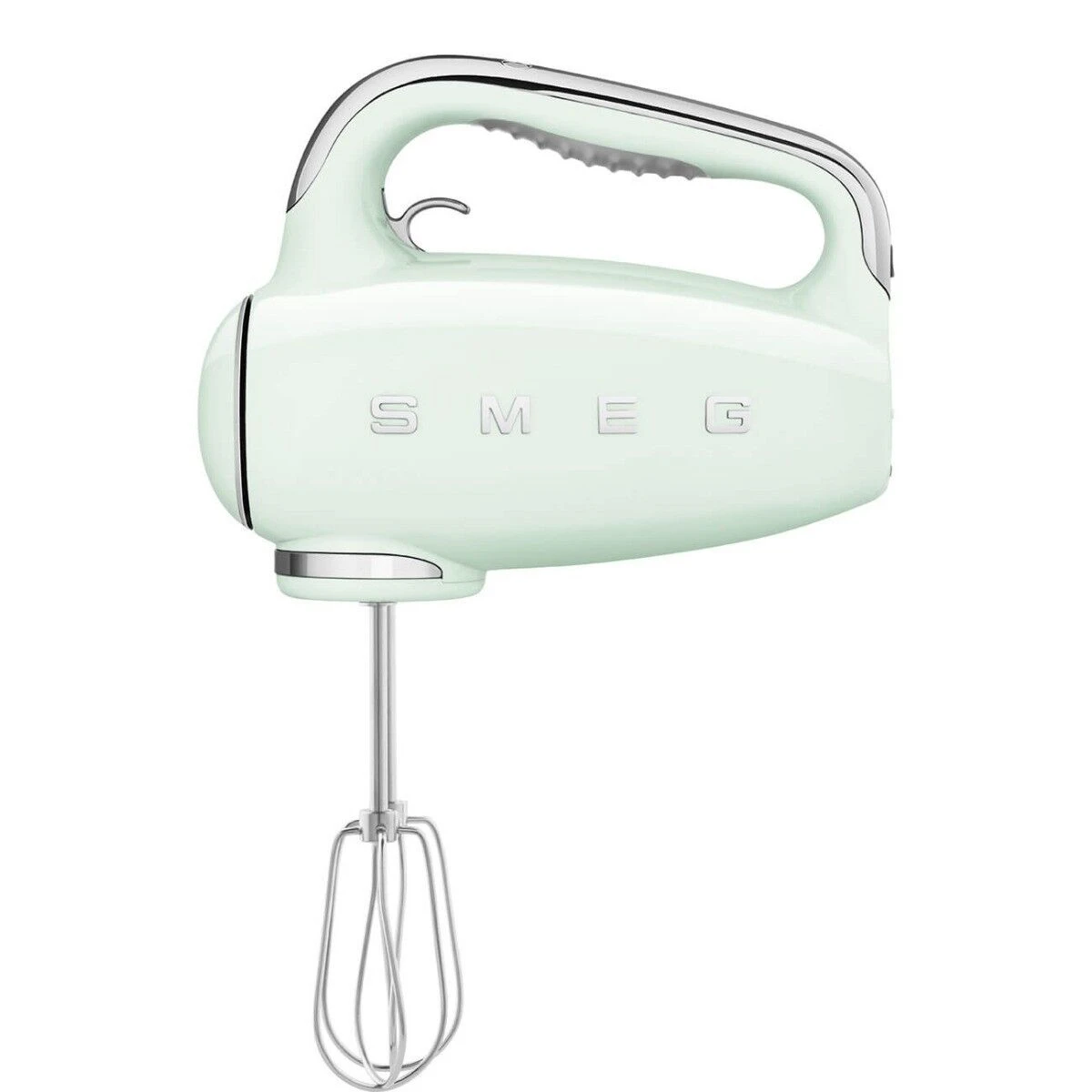 Deze handmixer 50’s style van SMEG is gemaakt van watergroen kunststof en heeft een vermogen van 250W. De mixer is eenvoudig in gebruik en beschikt over 9 snelheden. Voor het met gemak kloppen van room en eiwit, het kneden van deeg en mengen van ingrediënten.