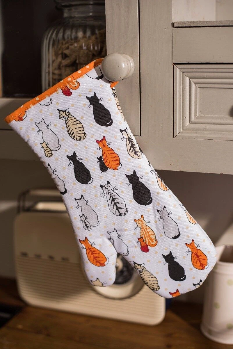 De Cats in Waiting ovenwant van Ulster Weavers is vervaardigd van katoen en voorzien van een polyester vulling voor isolatie. Gebruik de ovenwant om hete pannen van het fornuis of uit de oven te pakken. De ovenwant is voorzien van een afbeeldingen van katten op een witte ondergrond. De ovenwant is 37 cm lang en 20 cm breed.