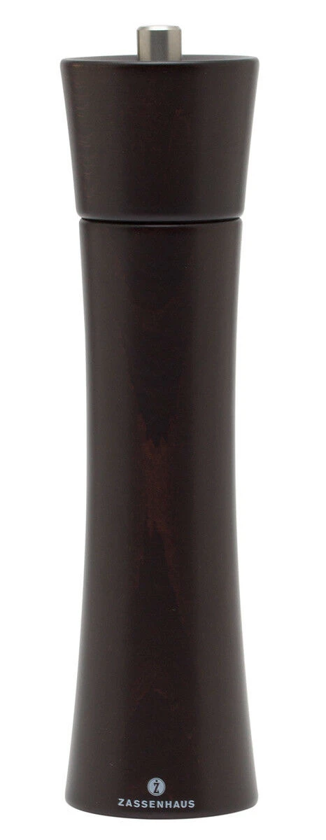 De Zassenhaus Frankfurt pepermolen is vervaardigd uit donker gekleurd hout. De pepermolen heeft een zandloper figuur met een lengte van 24 cm. De pepermolen van Zassenhaus heeft een keramisch maalwerk. Dit is slijtvast, sterk en corrosiebestendig.